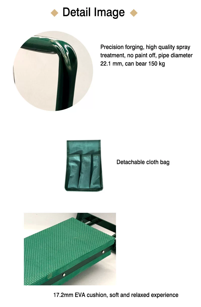 The Garden Kneeler is made of high-quality steel tube with high-quality powder coated finish.The cushion is padded with EVA foam.Folding design is convenient to use,save room and easy for storage.Works as both a bench to sit on and a soft knee pad.The soft cushion will reduce strain on your knees and the seat will reduce strain on your back.