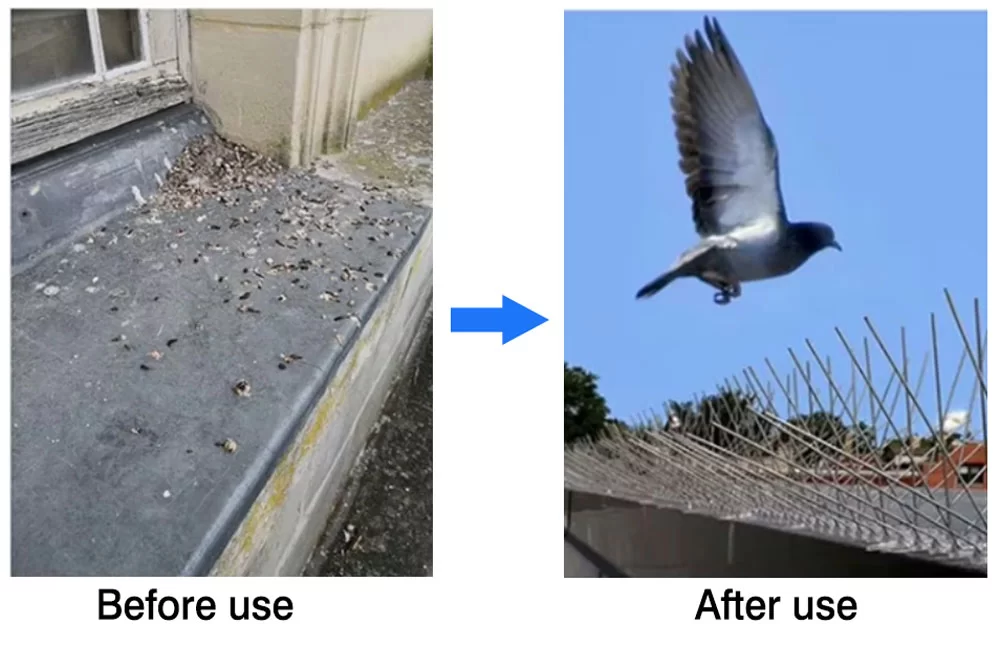 Wide Use: Pigeon spikes can be installed in any area,  window sills, roofs, gutters, balconies, ledges, doorways or any areas contaminated by bird droppings to get rid of the mess