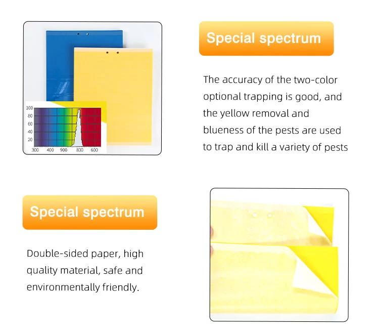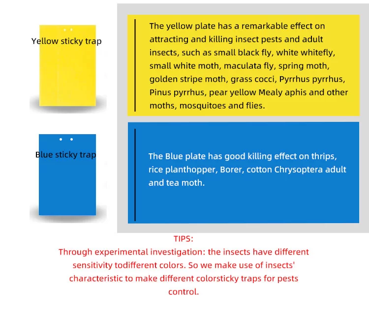 Insect sticky trap is a pest control product designed according to the tendency of pests to a particular color. Use specific colors to attract the corresponding pests, and then rely on the sticky surface of the trap to stick the pests, in order to achieve the purpose of pest control.